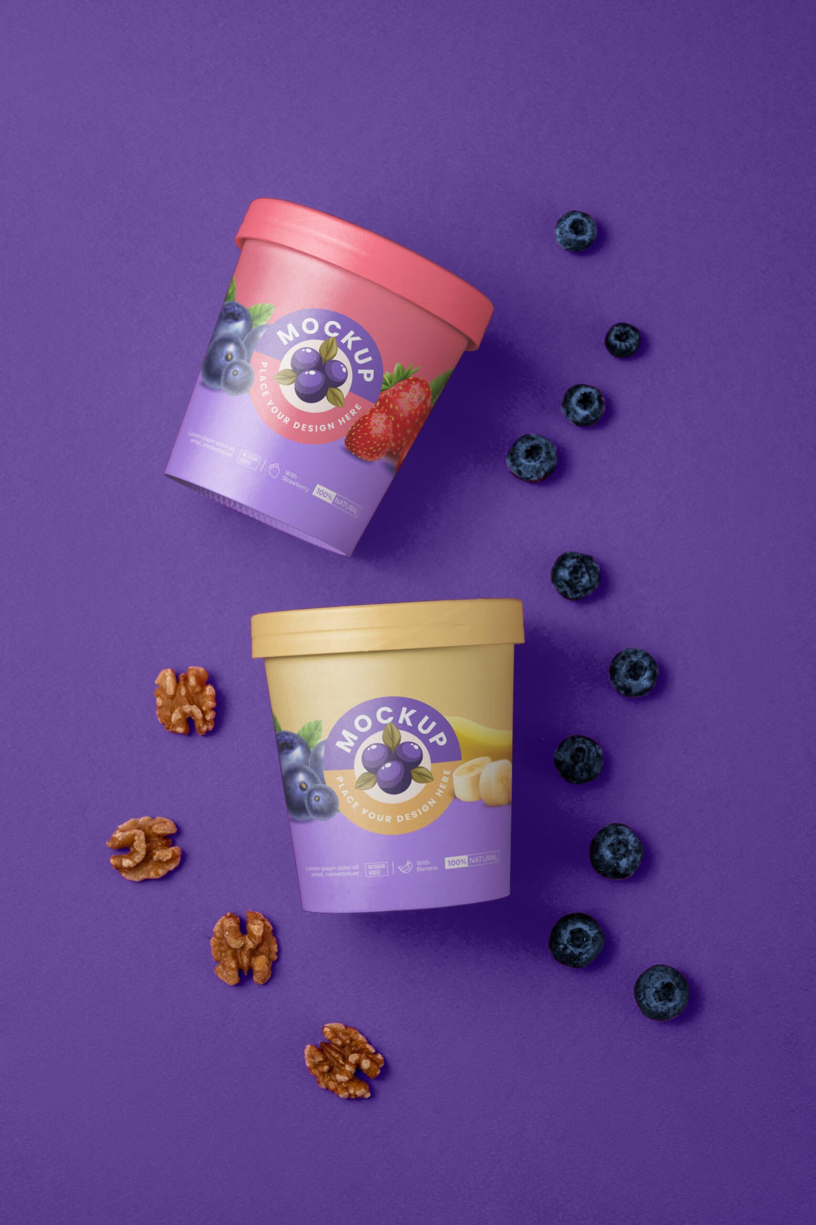 Ice cream cups mockup that can be used for your next ice–cream branding and packaging presentations or for decorative patterns and designs.
